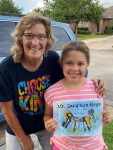 The other day when I was out and about, I stopped by my friend’s house, to return her power washer and share some fresh tomatoes from our garden. Her darling daughter was waiting for me at the curb with her autograph book as well as with the family’s copy of Mr. Quigley’s Keys.