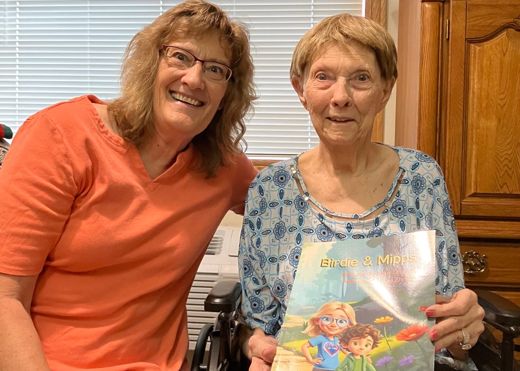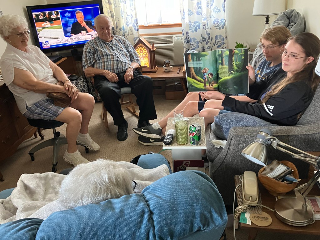 Next up, off to visit my Aunt Elaine, who just turned 91. Since our youngest son, Joshua, and his wife, Ariana, were with us, I asked them to read the book aloud in the roles of Birdie & Mipps.