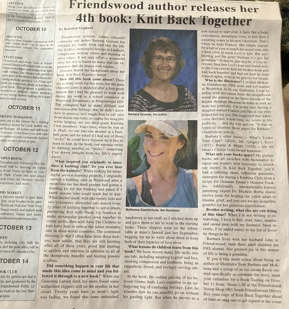 It makes my heart soar to see our book in the hands and on the heart of readers like her. And just look at the connection that she made with the book; her daughter’s handiwork (without needles!) is an incredible work of heart.