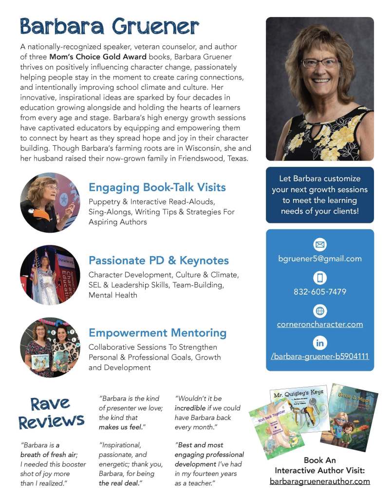 Download my brochure for more info or email or call me; I’m scheduling visits (local in-person and virtual) for the upcoming school year and I can’t WAIT for your school family to hear the joyous jingle of Mr. Quigley’s Keys. the darling dialogue between Birdie & Mipps, or compassionate care Levi feels in Knit Back Together.