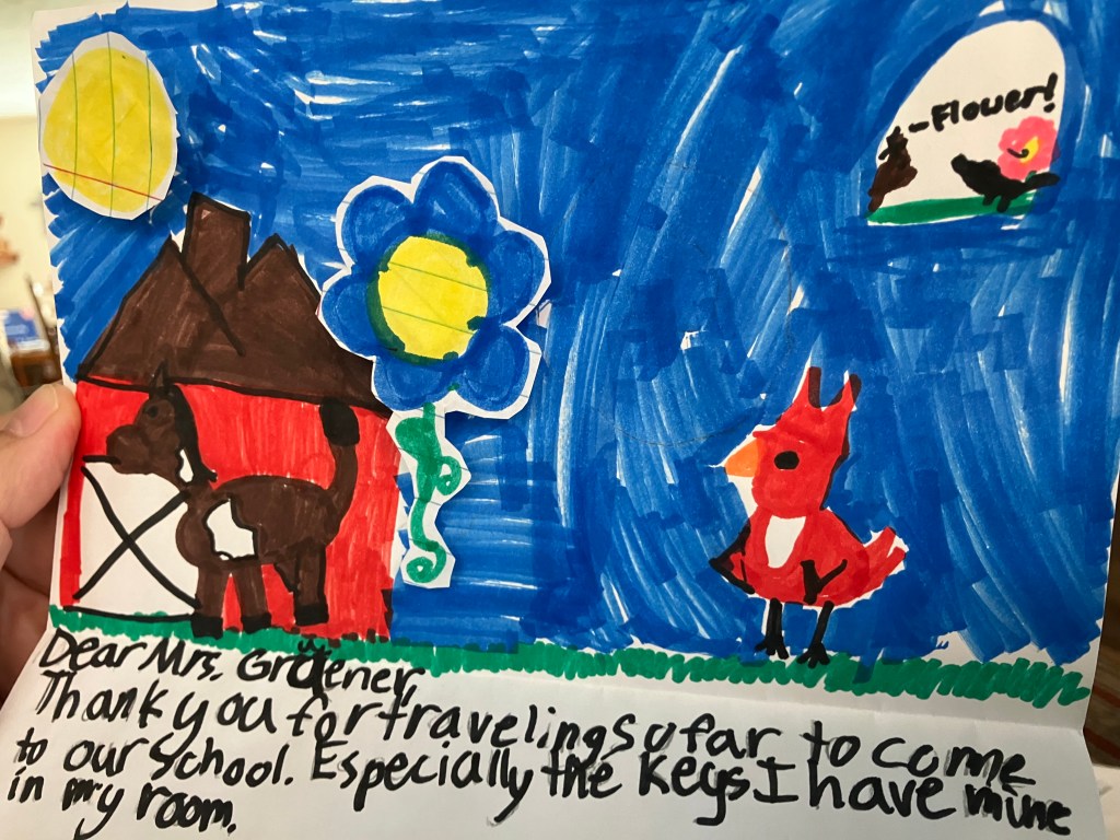 These curious learners had a lot of questions and connections, but my favorite reflection was a compliment: “Your voice is so good that you could actually read books on YouTube.” Is that not the sweetest thing? I thanked her and told her that back in 1979, when I won a State Forensics Storytelling competition, that one of the judges wrote, “You could make money with that voice,” and she agreed. “You could!”
