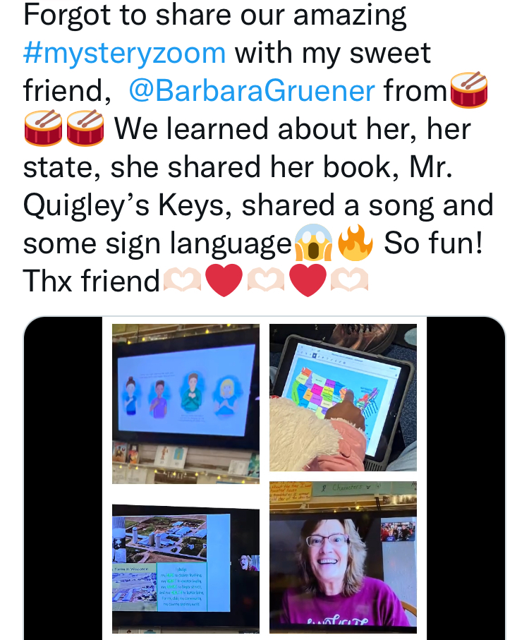 More joy came knocking when this Principal and friend in WI chose our book for her World Read-Aloud Day pick with this group of first-grade readers. My heart warmed right up with gratitude and pride when she posted this picture on Twitter that day.